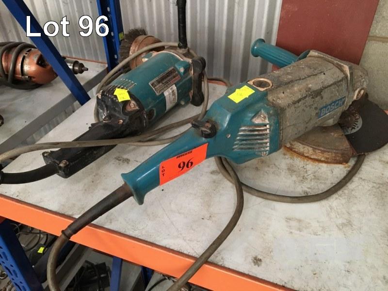 BOSCH 9" GRINDER & MAKITA DISC GRINDER WITH WIRE BRUSH ATTACHMENT, 240V