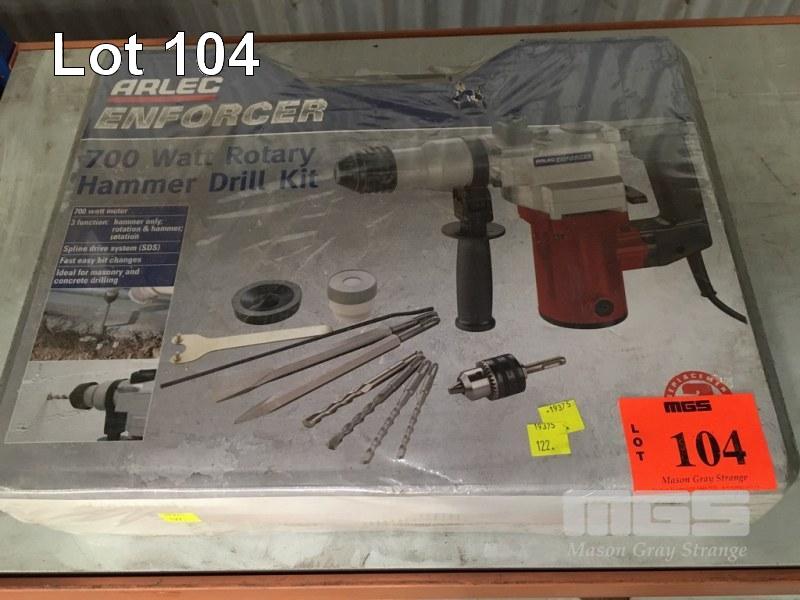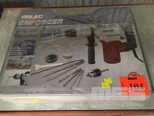 ARLEC ENFORCER ROTARY HAMMER DRILL, 700w WITH ATTACHMENTS IN CARRY CASE, 240V, AS NEW