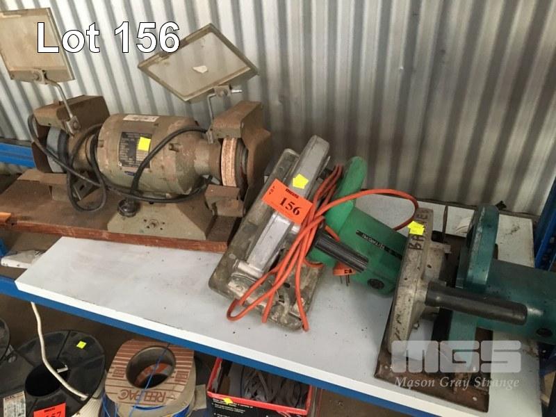 BENCH GRINDER, CROWN, 180mm WITH 2 x CIRCULAR SAWS, HITACHI & MAKITA, ALL FAULTS, 240V