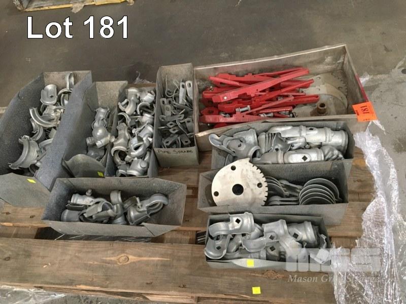 9 x STEEL TRAYS OF ELGATE PIPE FITTINGS, ASSORTED TYPES & SIZES INC VALVE HANDLES & COMPONENTS,