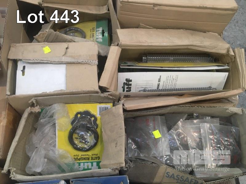 PALLET LACQUER CLEAR COAT, DOOR/GATE HARDWARE SCREWS, HOSE FITTINGS, ETC