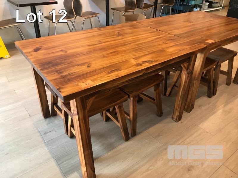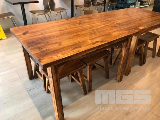 STAINED PINE TIMBER ORIENTAL STYLE DINING SUITE, RECTANGULAR TABLE & 4 x STOOLS 1200 x 1000mm