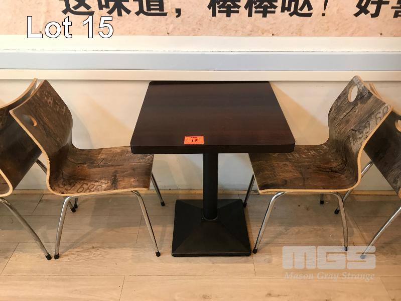 TIMBER LAMINATE SQUARE DINING TABLE, 60 x 600mm & 2 x DECORATIVE PLYWOOD CHAIRS