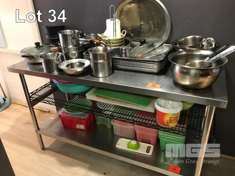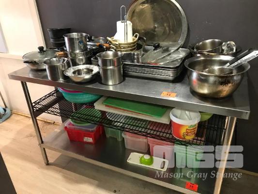 STAINLESS STEEL BENCH, 1600 x 600mm (W) WITH UNDERSTORAGE (NOT CONTENTS)