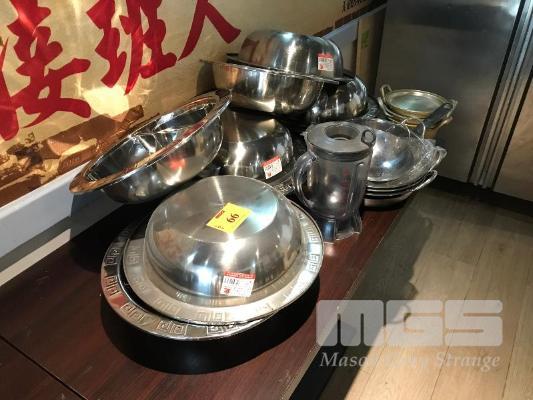 ASSORTED STAINLESS STEEL INGREDIENT BOWLS WITH DIVIDERS & SUNDRIES
