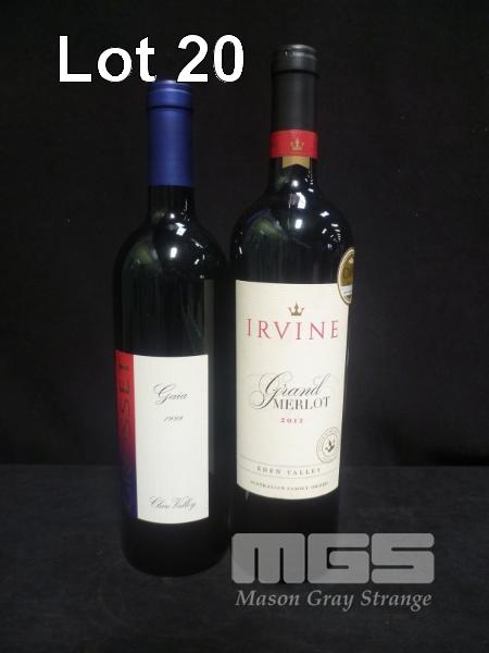 2 x BOTTLES RED WINE INC 1999 GROSSET, GAIA CABERNET SAUVIGNON, CABERNET FRANC, MERLOT, CLARE VALLEY & 2012 IRVINE GRAND MERLOT, EDEN VALLEY