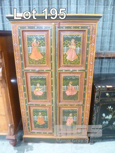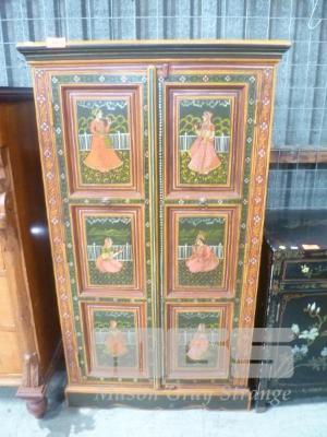 HAND PAINTED INDIAN STYLE TIMBER CABINET, 2 DOOR