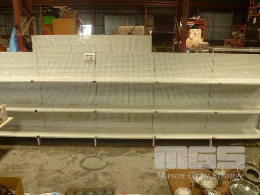 RUN OF WHITE STEEL STOCK SHELVING, COMPRISING OF; 5 BAYS, DOUBLE SIDED, LENGTH 6m X HEIGHT 1.9m X DEPTH 45cm