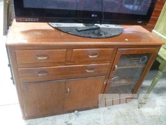 TIMBER ART DECO SIDEBOARD, ETCHED GLAZED DOOR, 3 DRAWER, 2 DOOR