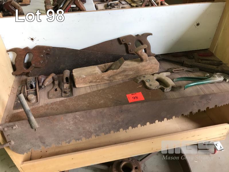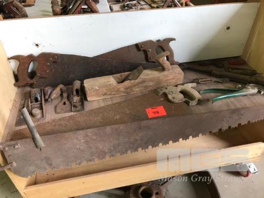 ASSORTED VINTAGE TOOLS, SAWS, PLANES ETC