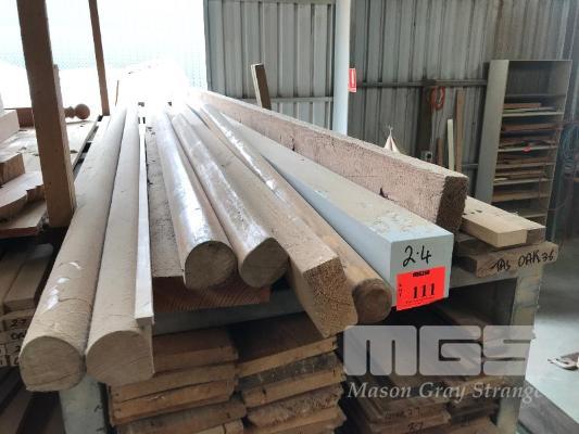 ASSORTED TIMBER STOCKS, 90 x 90??? PRIMED LAMINATE POST, 2400mm, 4 x HAND NAIL PIECES, APPROX 3m EACH 2 x OREGON PIECES, 140 x 45 x 3.6m & 140 x 35 x 3m