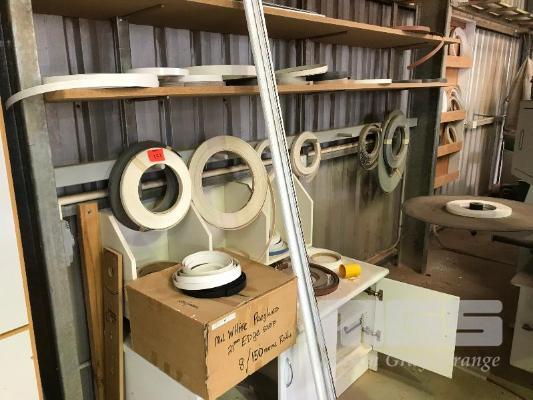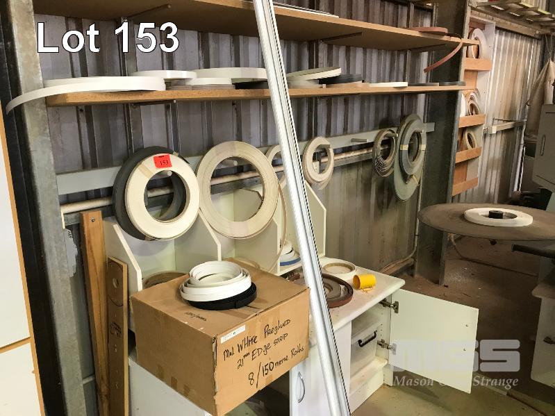 LAMINATE WORKSHOP CABINET & CONTENTS ASSORTED ROLLS PRE-GLUED EDGE BANDING MATERIAL