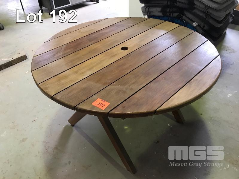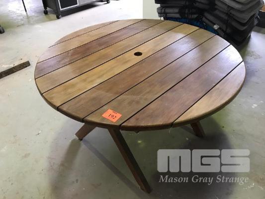 CIRCULAR STAINED TIMBER OUTDOOR TABLE, 1500mm (D)