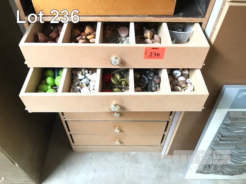ASSORTED FURNITURE & CABINET HANDLES & KNOBS, HINGES & DOOR FURNISHINGS