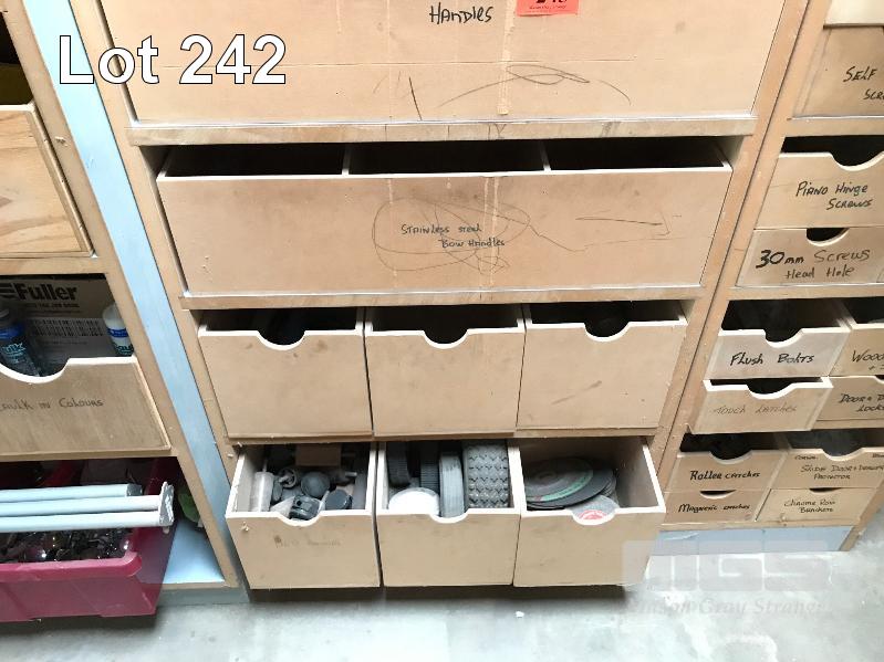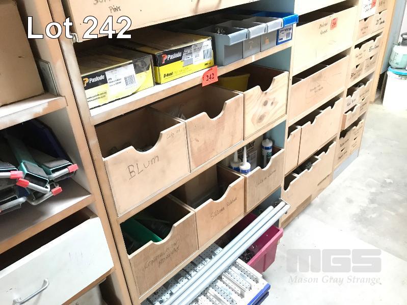 ASSORTED HARDWARE & CONSUMABLES, SILICONE & SEALANT, GANG NAILS, HINGES, CABINET KNOBS & HANDLES