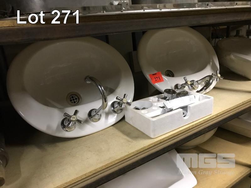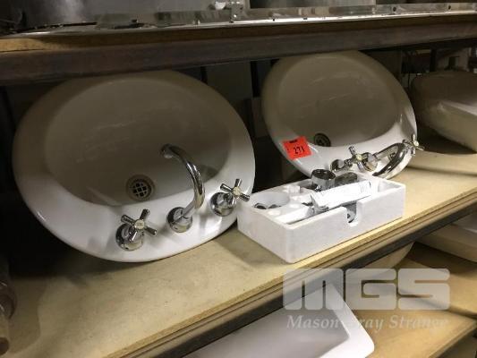 4 x CERAMIC VANITY BASINS INC 3 x IN COUNTER, 2 WITH TAP FITTINGS & 1 x SEMI RECESSED