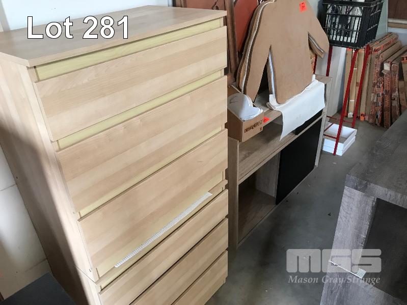 TIMBER LAMINATE BOOKSHELF & 2 x TIMBER LAMINATE 3 DRAWER CHESTS
