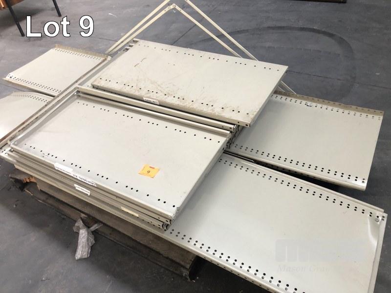 STEEL SHELVES (DISMANTLED), 2200 x 450mm & 400mm (D) APPROX 30 x SHELVES WITH UPRIGHTS & BACKS 2 x PALLETS