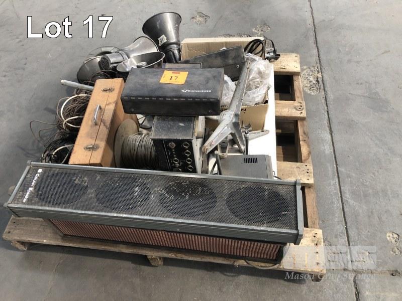 PA SYSTEM INCLUDING SPEAKERS, AMPLIFIERS, MICROPHONE, ETC