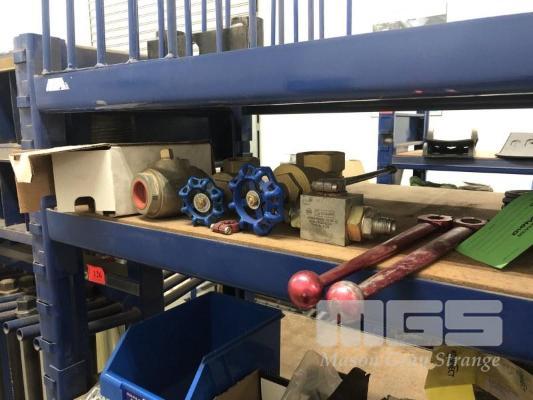 ASSORTED HARDWARE, INC BRASS VALVES, HOSE, M40 DRIVER SUB, STAUFF CONTROLLER, HANDLES, CONDUIT CLAMPS, ETC 1 x SHELF