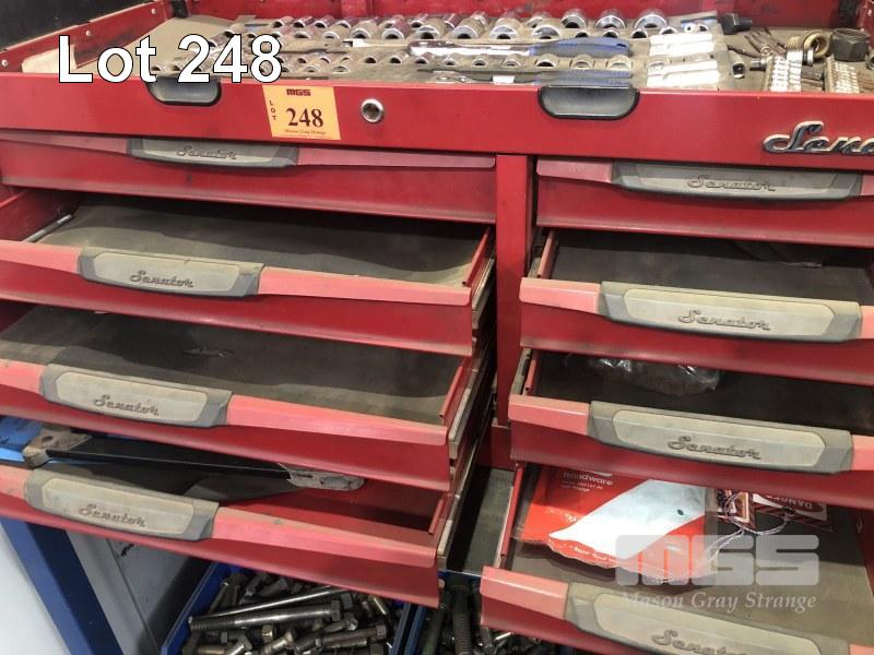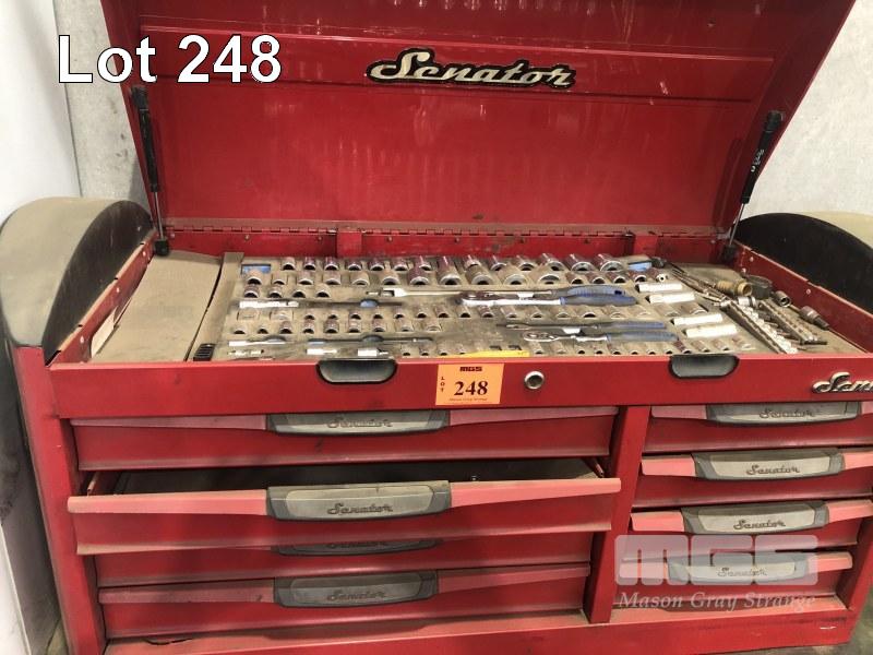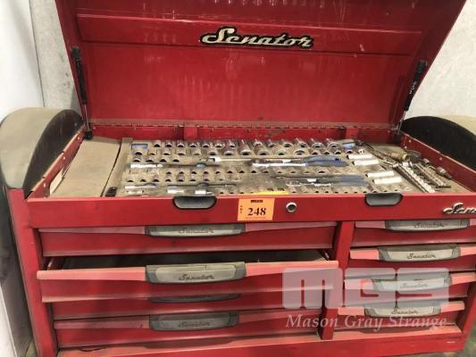 SENATOR TOOL CHEST, 8 DRAWER & GAS STRUT LIFT LID WITH SCORPION TOOLS, INCL 1/2 & 3/8 SOCKET SET, METRIC & IMPERIAL SPANNERS & DRIVER SET