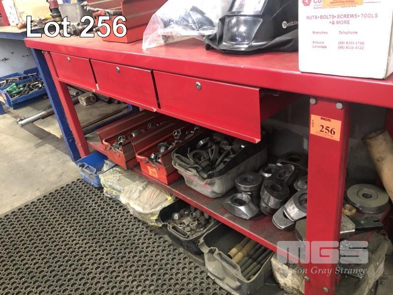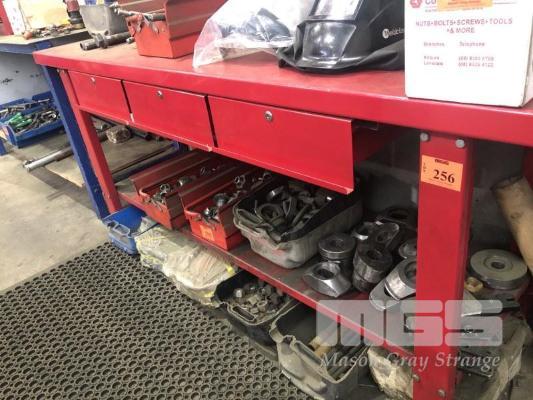 JIMY TOOL BENCH, 2000 x 620mm 3 DRFAWERS & BASE SHELF, RED