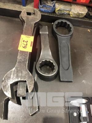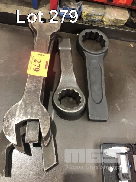 2 x SLOG SPANNERS, 75mm & 55mm WITH ASSORTED LARGE OPEN END SPANNERS