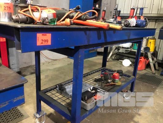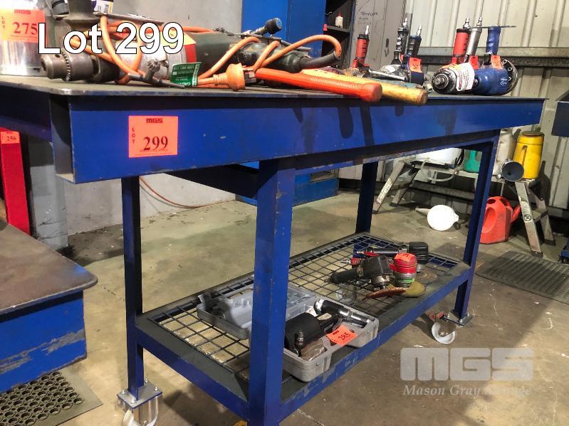 PLATE TOP TOOL TROLLEY BENCH, 1800 x 600 x 5mm WITH BACK LIP & MESH UNDER SHELF