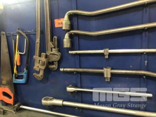 TOOL SHADOWBOARD, STRONG BAR 3/4", 2 x RATCHETS, SOCKET SPANNERS, STILLSONS & SAWS