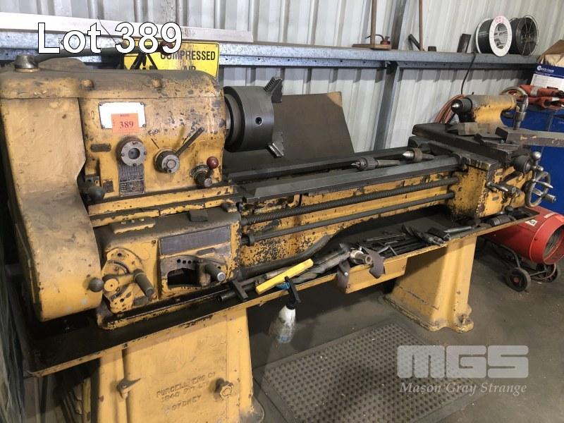 MACHINE GAP BED LATHE, PRUCELL ENGINEERING AUST. 1200 x 500 x 60mm WITH 3 JAW CHUCK TOOL BLOCK, TOOLING & TIPS, 415V