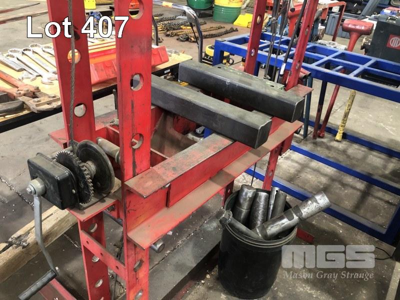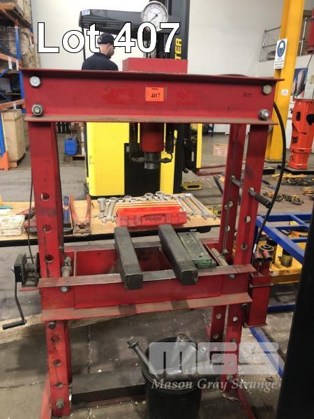 WORKSHOP PRESS, EST. 2 TONNE 2 STAGE HYDRAULIC 800mm x 1200mm OPENING WINCH RISE & FALL AND TOOLING