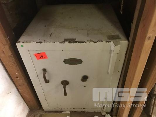SAFE, JL KELLY & SON, MELBOURNE 780 (H) x 620 (W) x 610mm (D) KEY TYPE, SINGLE DOOR (NOTE: VERY HEAVY, BUYER TO REMOVE, FLOOR IS UNSTABLE & WILL NEED TO BE BOARDED TO REMOVE, AT BUYERS EXPENSE)