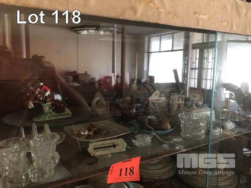 COLOURED GLASSWARE, VASES, FINE CHINA, ETC, 1 x SHELF