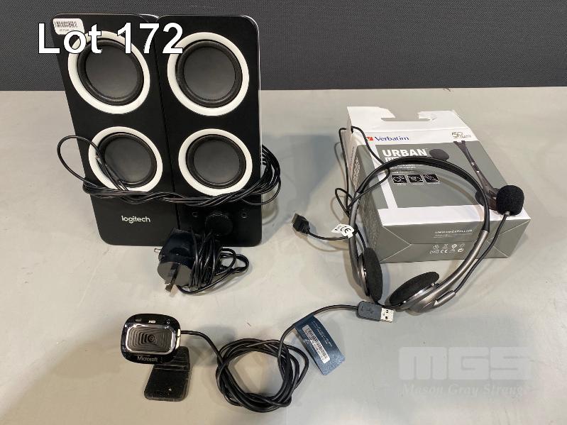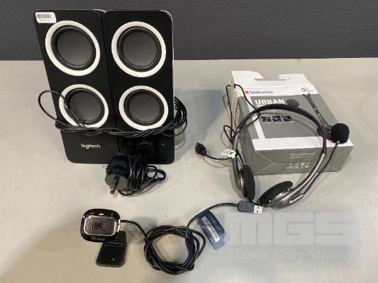 LOGITECH Z200 MULTIMEDIA SPEAKERS, MICROSOFT LIFECAM HD-3000 WEBCAM & VERBATIM USB HEADSET