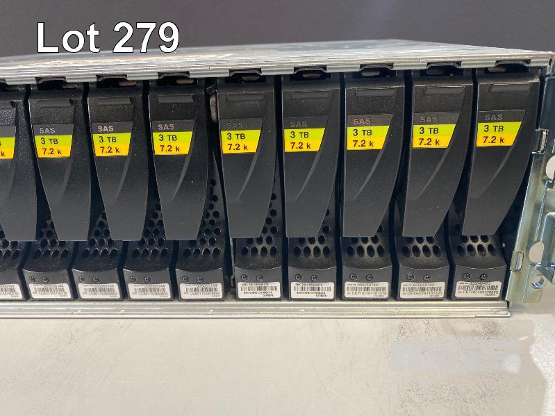 RACKMOUNT STORAGE ARRAY, DELL EMC2, MODEL KTN-STL3, 15 x 3TB SAS HDD, 2 x SAS CONTROLLERS (303-108-000E), 2 x PSU (NO CABLES)