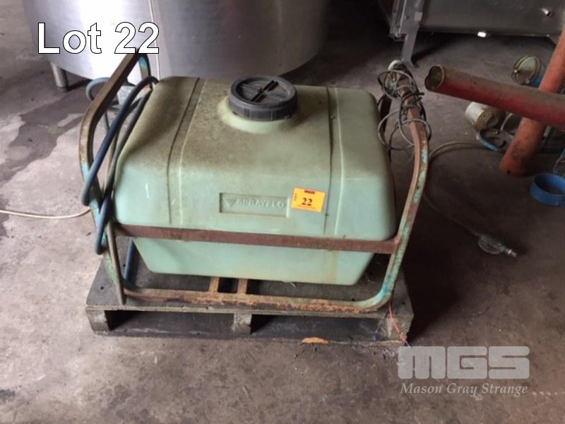 PORTABLE SPRAY UNIT 'SPRAYFLO', 60 LITRE (APPROX) 12V PUMP, HOSE, IN CARRY FRAME