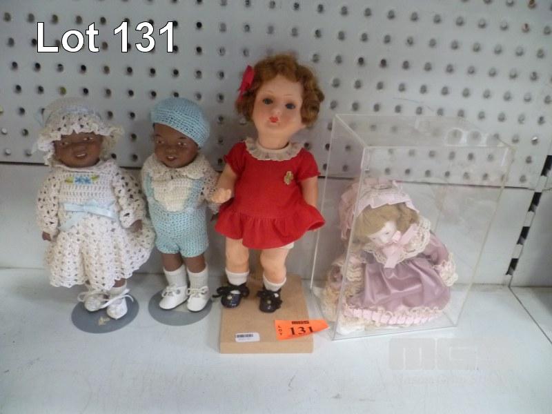 4 x PLASTIC DOLLS, PLASTIC DOLLS ON STANDS & PORCELAIN DOLL IN PLASTIC DISPLAY BOX, 25-30cm (H)