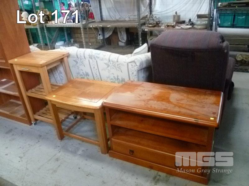 PINE ENTERTAINMENT UNIT, TIMBER SIDE TABLE & MOBILE DRAWER UNIT, SINGLE DRAWER