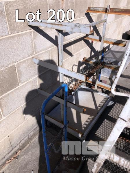 2 x MOBILE STEEL STOCK RACK & SMALL OXY TROLLEY