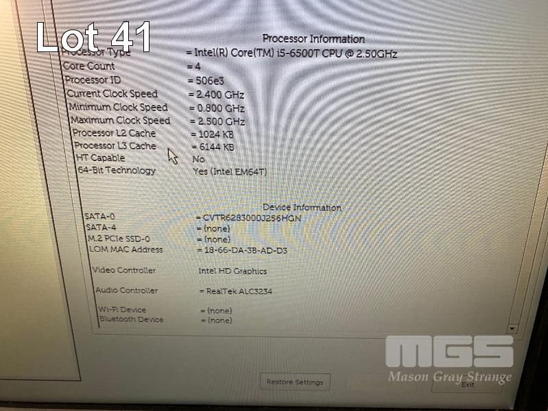 DESKTOP PC, DELL OPTIPLEX 7040 MICRO, CORE i5 6500T (6TH GEN) @ 2.5GHz, 8GB DDR4 RAM, 256GB SSD, INTEL HD VIDEO, 6 x USB, WINDOWS 10 PRO INSTALLED & POWER SUPPLY (NO KEYBOARD, NO MOUSE) S/N:1P82LG2