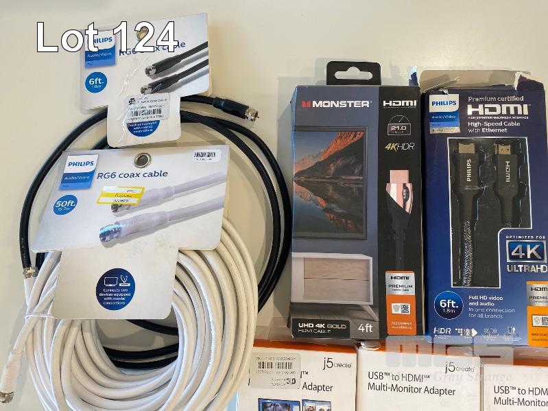 22 x ASST ACCESSORIES INC. COAX CABLES, HDMI CABLES, USB-C HUB, USB TO HDMI ADAPTERS, UNIVERSAL CARD READER, NETWORK CABLES, DISPLAYPORT TO HDMI ADAPTERS (OPEN BOX)