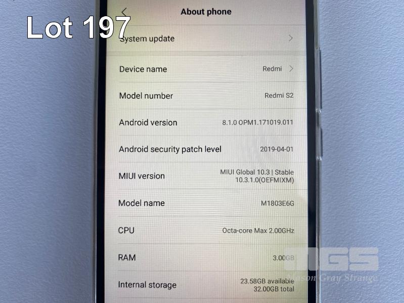 XIAOMI REDMI S2 SMARTPHONE, 32GB, DUAL SIM, MODEL M1803E6G (GREY) (NO CABLE, NO CHARGER) S/N:49C1A5D