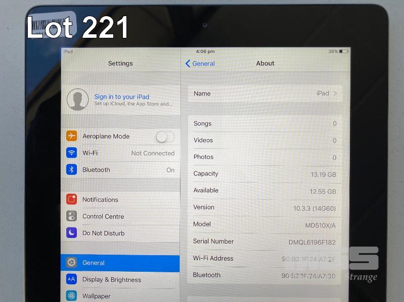 APPLE iPAD 4TH GEN, 16GB, Wi-Fi, SPACE GREY, MODEL A1458