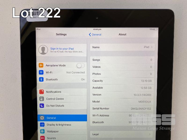APPLE iPAD 4TH GEN, 16GB, Wi-Fi, SPACE GREY, MODEL A1458