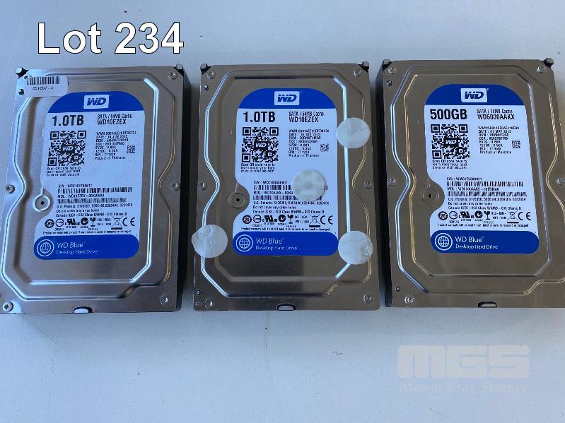 2 x WD 1TB SATA HARD DRIVES, 3.5" 1 x WD 500GB SATA HARD DRIVE, 3.5"