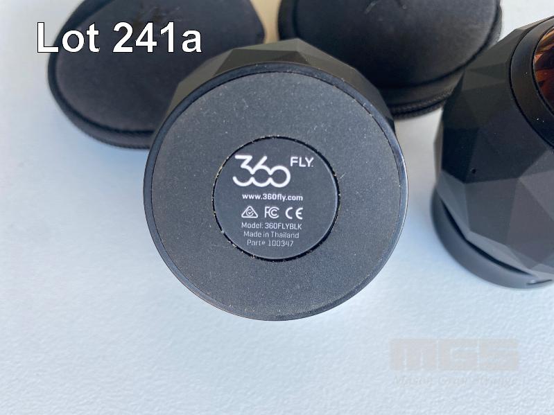 2 x 360FLY ACTION VIDEO CAMERAS, MODEL 360FLYBLK WITH POWER CRADLES ONLY (NO CABLES, NO MOUNTS)