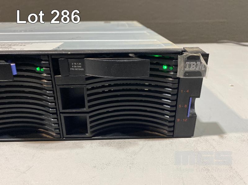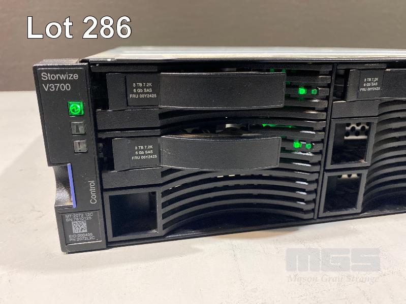RACKMOUNT STORAGE ARRAY, IBM STORWIZE V3700, MODEL 2072-12C, 2U, 5 x 3TB SAS HDD, 2 x 00AR108 CONTOLLERS, 2 x PSU (NO CABLES) S/N:7810125