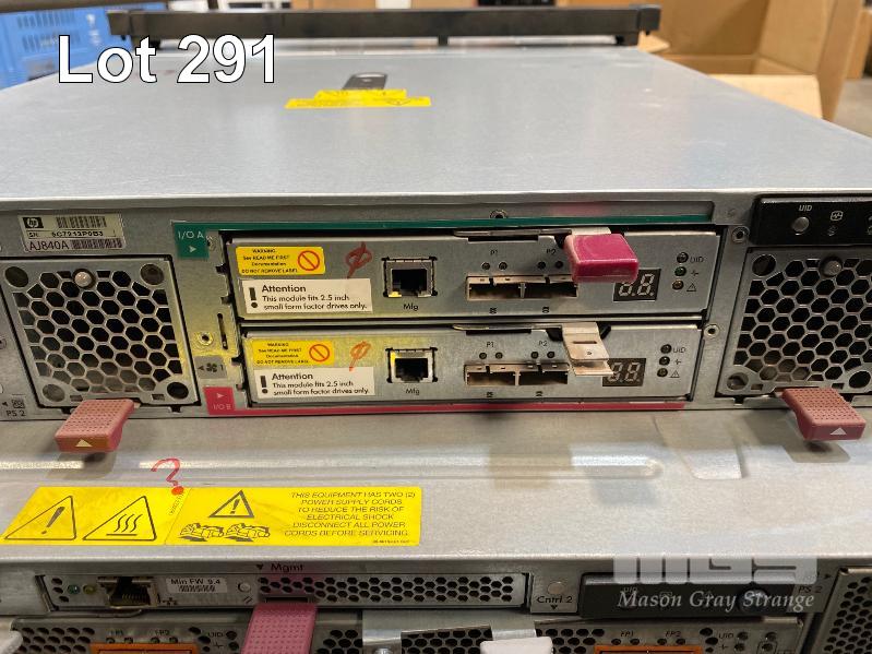 RACKMOUNT STORAGE SYSTEM (NO HDD), COMPRISING - HP STORAGEWORKS D2D4106fc BACKUP SYSTEM, 2 x XEON X5550 @ 2.66GHz, 64GB ECC DDR3 RAM (8x8GB), NO HDD (FAULTY, POWERS ON, NOT BOOTING) - HP STORAGEWORKS D2700 ENCLOSURE (NO HDD), AJ941 - HP STORAGEWORKS P6300 DUAL CONTROLLER FC ARRAY (NO HDD), AJ936A WITH 2 x AJ918-63001 WITH RAILS (NO CABLES) S/N:CZJ21104GH