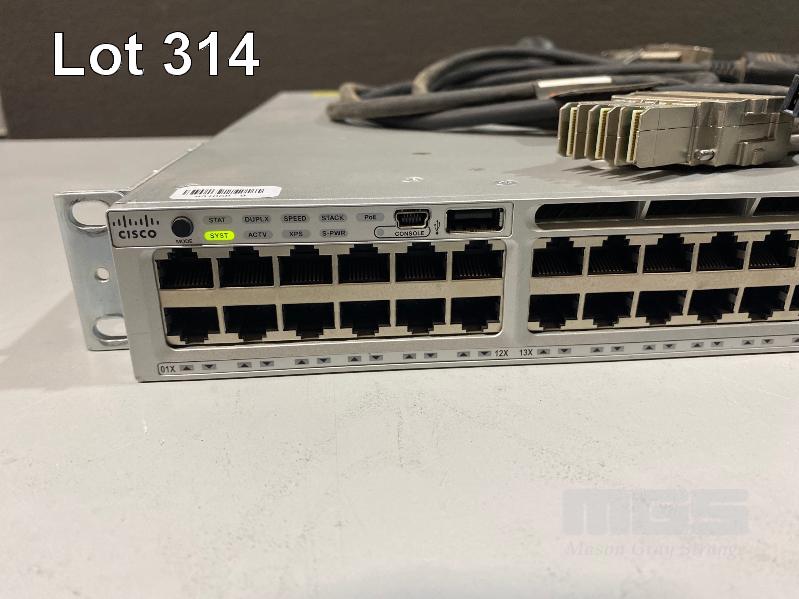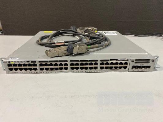 CISCO CATALYST 3850 48 PoE+ 48-PORT SWITCH, WS-C3850-48P-S V02 WITH C3850-NM-2-10G NETWORK MODULE WITH STACKING CABLES & NOTCH POWER CABLE S/N:FOC1737U0FZ