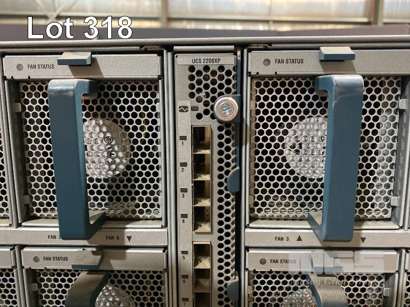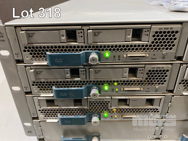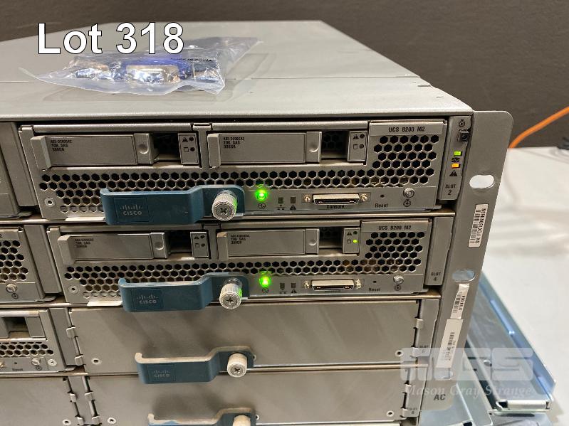 CISCO N20-C6508 V02 BLADE ENCLOSURE WITH 5 x CISCO BLADE SERVERS - CISCO UCS B200 M2, 2 x XEON E5620 @ 2.4GHz, 48GB ECC DDR3 RAM, 2 x 300GB SAS HDD - CISCO UCS B200 M2, 2 x XEON X5650 @ 2.67GHz, 48GB ECC DDR3 RAM, 2 x 300GB SAS HDD - CISCO UCS B200 M2, 2 x XEON E5620 @ 2.4GHz, 48GB ECC DDR3 RAM, 2 x 300GB SAS HDD - CISCO UCS B200 M2, 2 x XEON X5650 @ 2.67GHz, 48GB ECC DDR3 RAM, 2 x 300GB SAS HDD - CISCO UCS B200 M3, 2 x XEON E5-2640 @ 2.5GHz, 48GB ECC DDR3 RAM, NO HDD WITH 2 x CISCO UCS 2208XP MODULES & RAILS (NO 15A POWER CABLES) S/N:FOX1606H68N